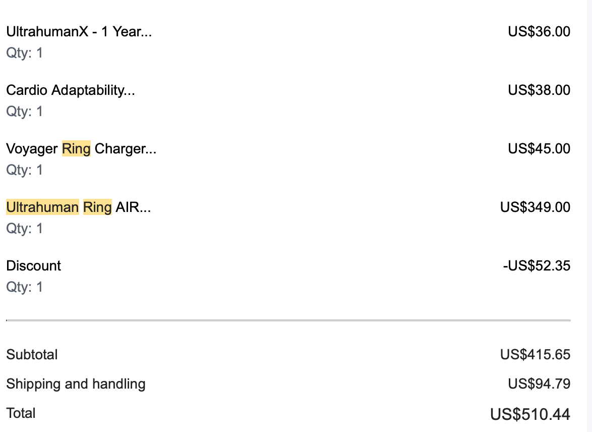 The Ultrahuman Ring starts at $349 USD (about $480 to $490 CAD). I also opted for the two-year extended warranty (UltraHuman X), which adds coverage for theft, loss, accidental damage, and includes a free replacement if your ring size changes. The standard warranty only covers manufacturing defects for one year, so the upgrade felt worth it for peace of mind.