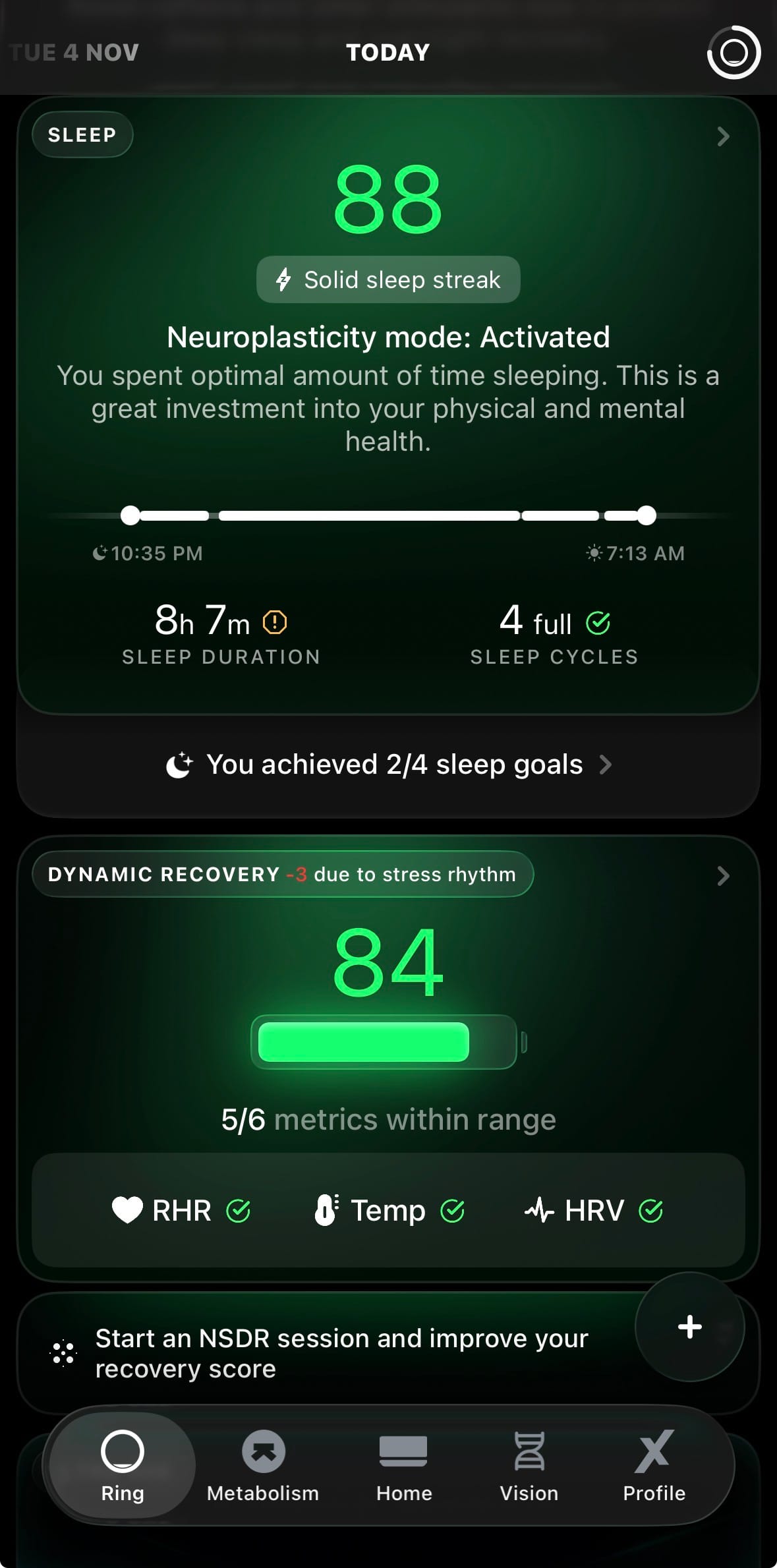 - Actionable insights when metrics are low: When sleep, recovery, or readiness scores drop, the app should do more than just show a number. Using trends from existing data to suggest possible causes or small adjustments would make the insights feel much more valuable and personal.